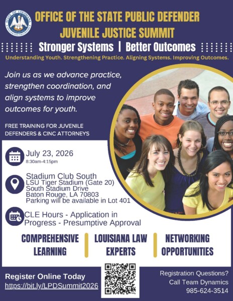 « All Events OSPD Juvenile Justice Summit July 23 @ 8:30 am - 4:15 pm « Regular Legislative Session Adjourns Add to calendar Google Calendar iCalendar Outlook 365 Outlook Live Details Date: July 23 Time: 8:30 am - 4:15 pm Venue Stadium Club South – LSU Tiger Stadium (Gate 20) 50 Fieldhouse Drive Baton Rouge, LA 70808 United States + Google Map