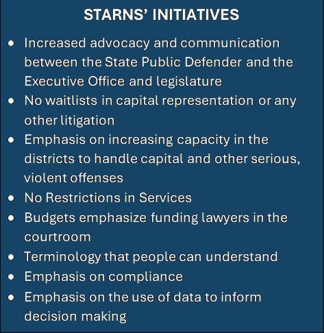 In January 2020, Rémy Voisin Starns was selected by the then Louisiana Public Defender Board to serve as the system’s third permanent State Public Defender. With a new vision for the office and the effects of the pandemic on court closures and CUF collections, the legislature stepped in and began providing additional state supplemental assistance. Mr. Starns’ appointment was later re-affirmed by Governor Landry, as he was appointed to serve as the first State Public Defender under 2024 legislation that abolished the Louisiana Public Defender Board and created the Office of the State Public Defender.